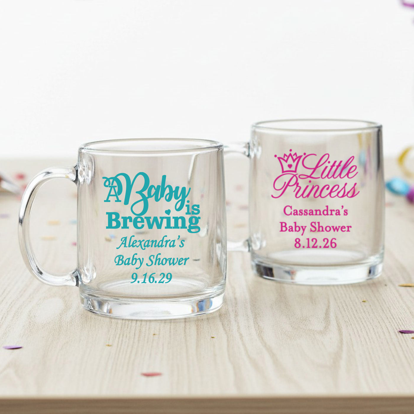 This Baby Shower Personalized Clear Glass Mug combines style and personalization in one charming keepsake. It can be customized with names, dates, and you can choose from a variety of adorable baby-themed designs. Perfect as a party favor or gift, it will be treasured long after the celebration.