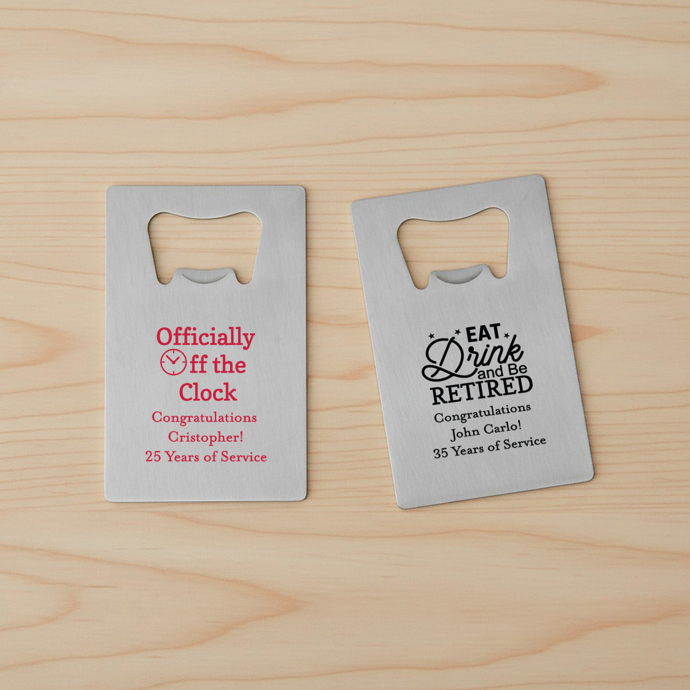 Retirement Personalized Silver Credit Card Bottle Opener - Set of 24